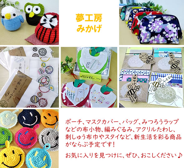 夢工房みかげ。のハンドメイド・グッズを販売いたします。新生活を彩るお気に入りのグッズが見つかるはずです。ぜひ、お越しください。 開催日時:4月10日(日)13:00~16:00開催場所:サンガスタジアムby KYOCERA(京都府亀岡市追分...