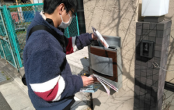 みかげ。のポスティングチームが、依頼主様からいただいたチラシを指定された地域に丁寧かつ迅速に配ります。 ポスティング作業着